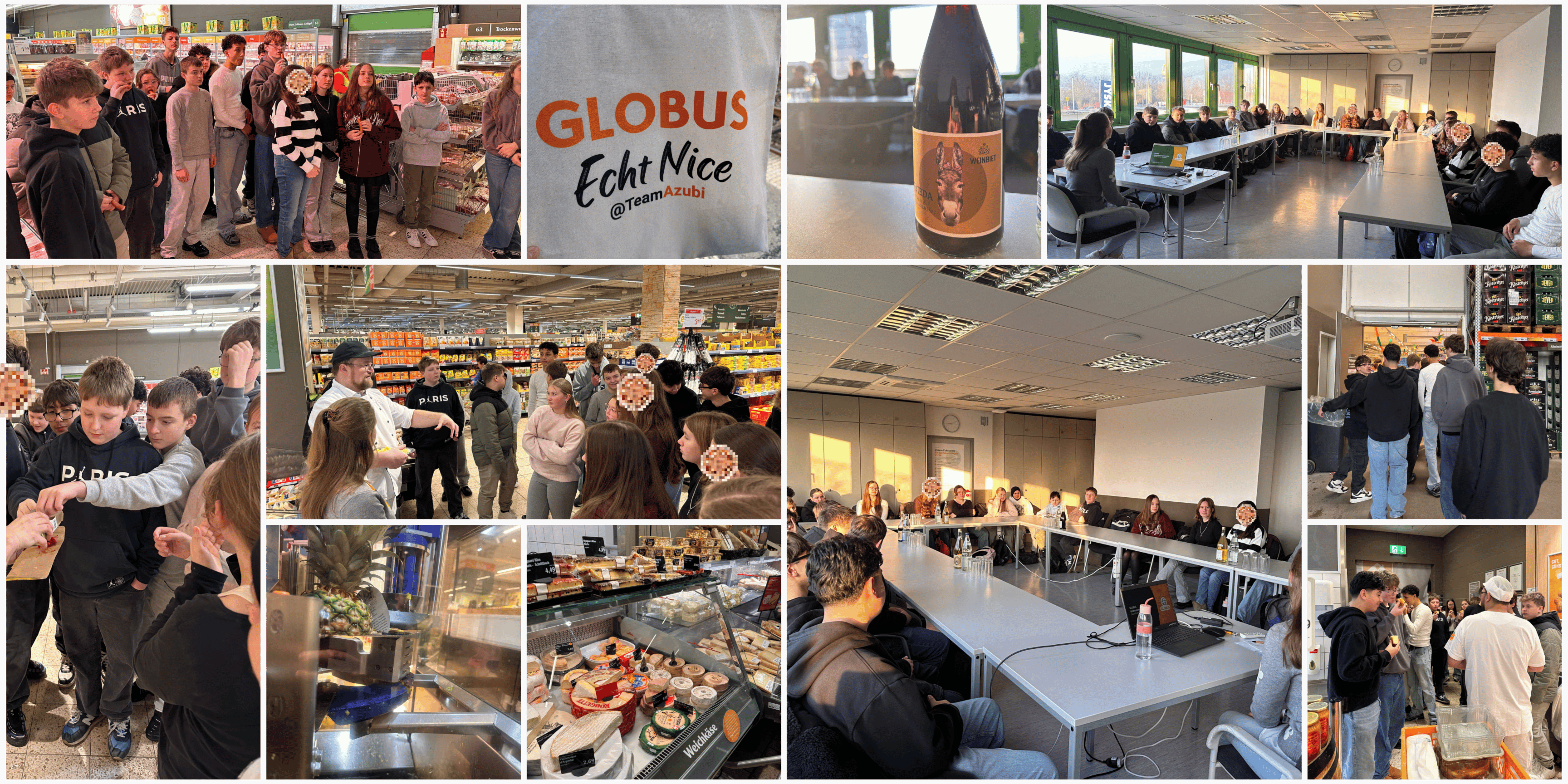 Zu Beginn wurden wir durch den Markt geführt und konnten sehen, wie groß und vielseitig ein Unternehmen wie Globus ist. Besonders spannend war der Blick hinter die Kulissen. Wir haben erfahren, was alles nötig ist, damit die Waren jeden Tag frisch im Regal liegen.