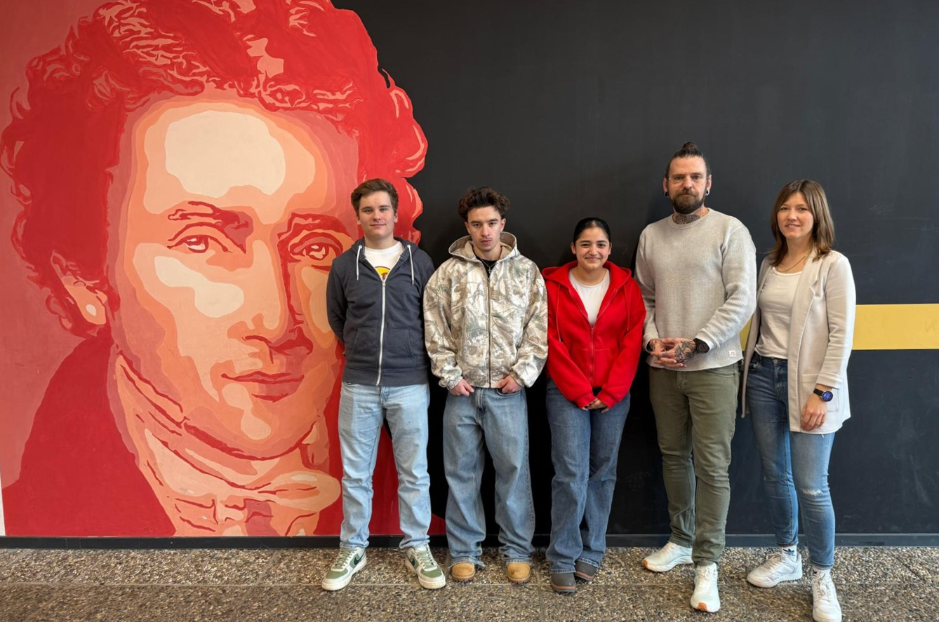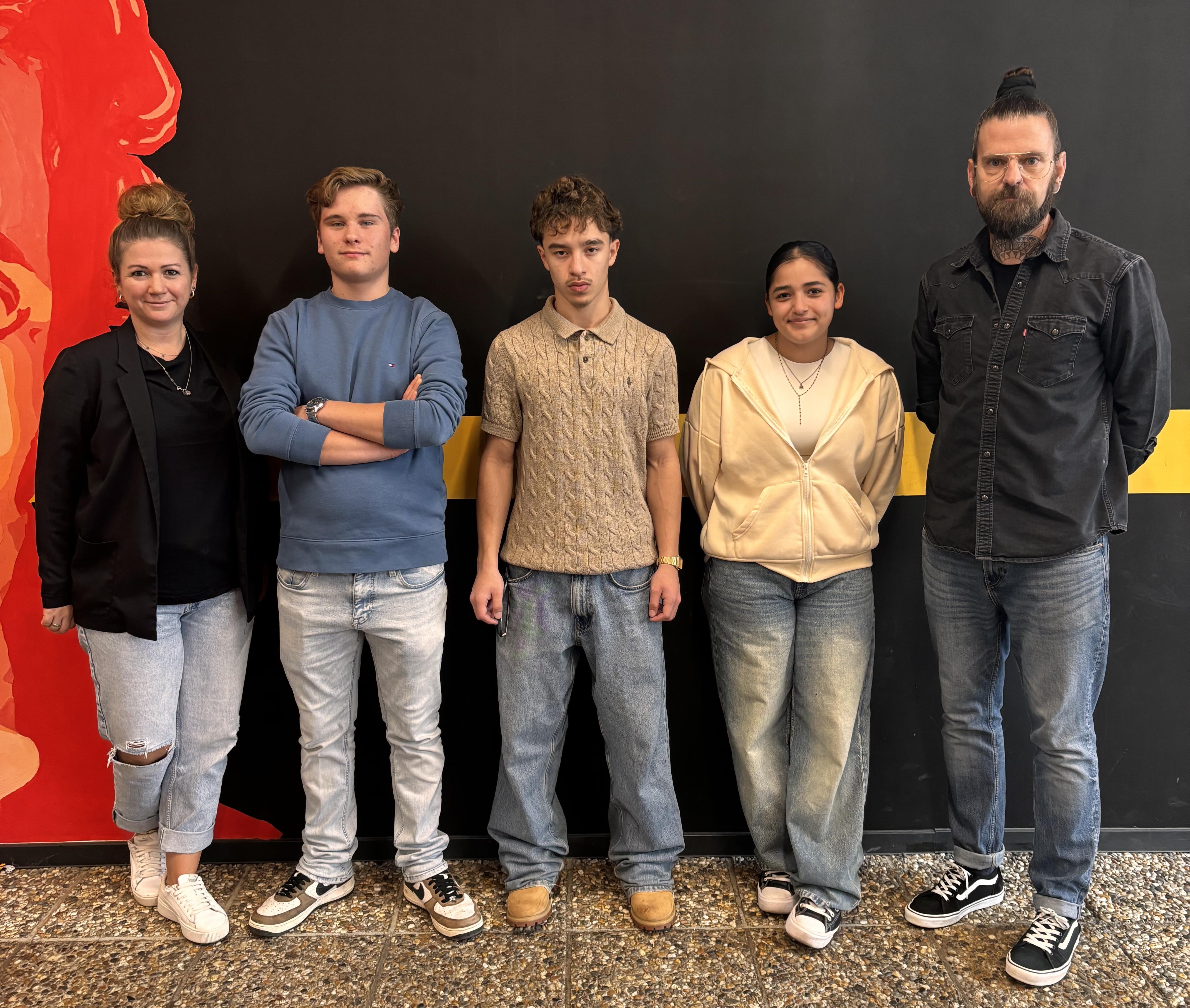 Von links nach rechts: Frau Rebholz, Finn Jörger (9c), Luan Dauti (10b), Jin Abdo (10d) und Herr Wagner.